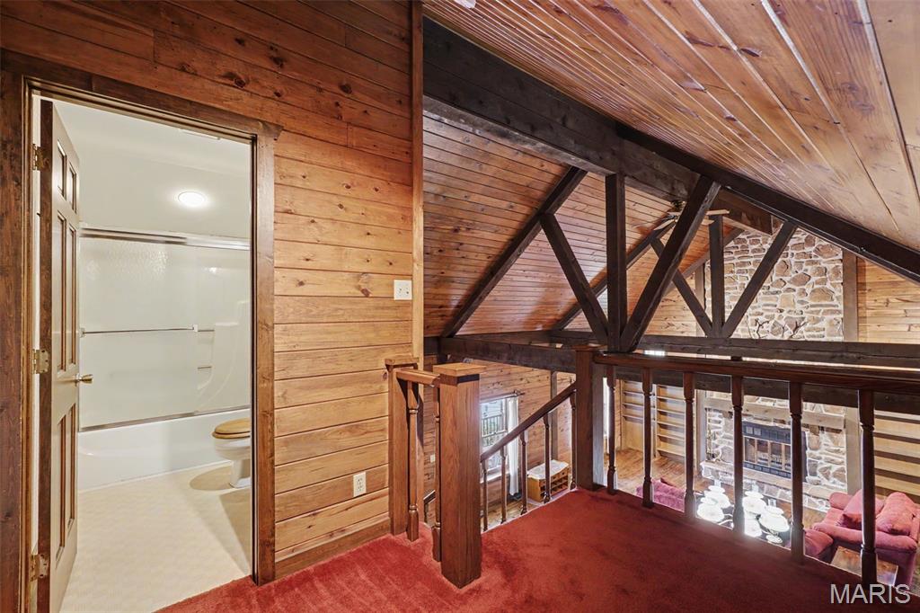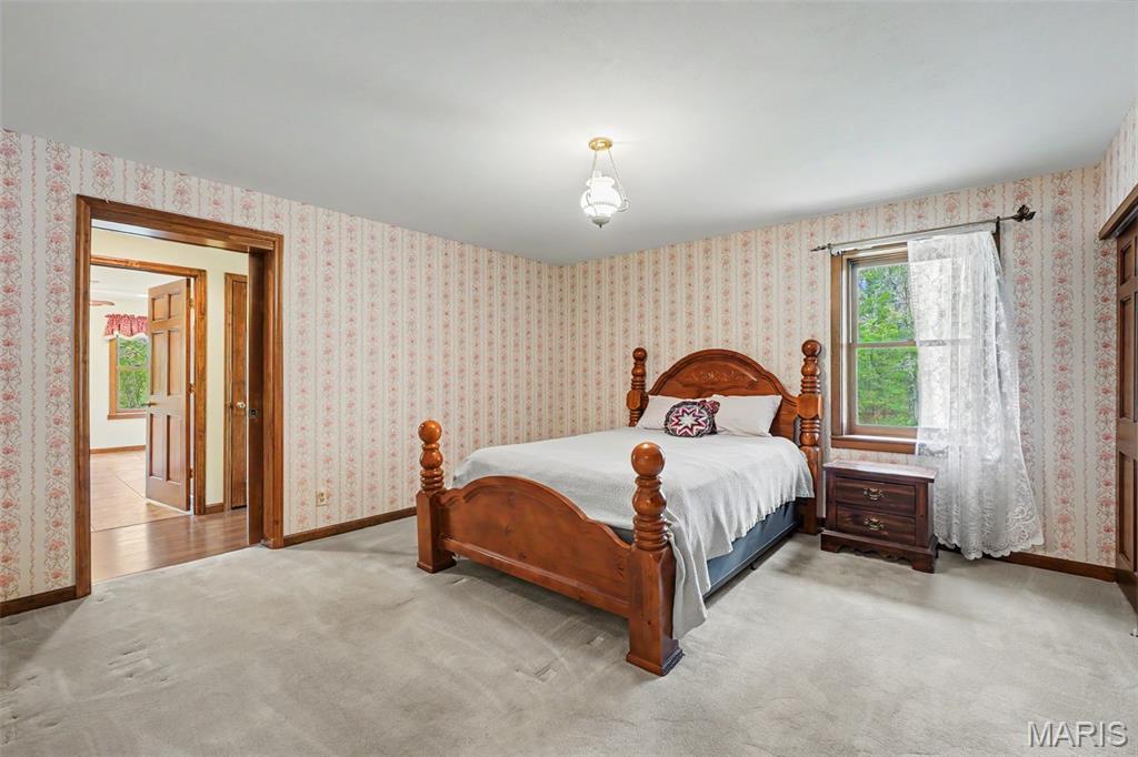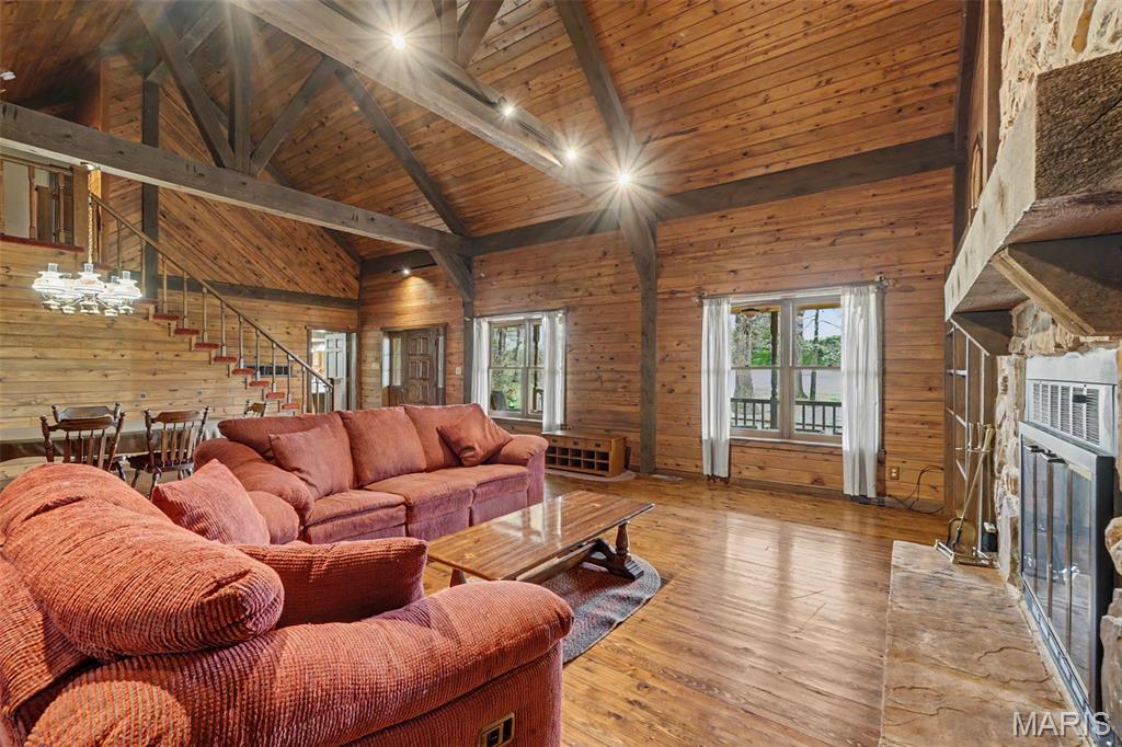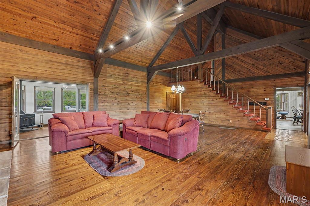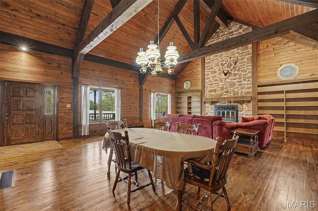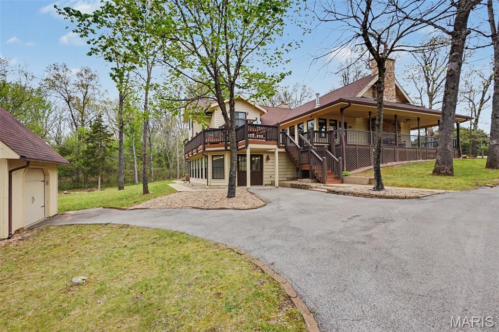 So may possibilities in this 'first time on the market' property that offers sustainability with the stocked 3-acre lake and 44 acres that are half open/half wooded. One owner home, crafted with love and integrity, just waiting for you to make it your own special home! Exterior walls are built with double 2x4 framing, offering support to the massive vaulted great room with wood burning fireplace. Extra-large eat in kitchen where you can just imagine all the family meals that will be served around the second cozy woodburning fireplace! 3rd wood burning stove is sitting back on the sun porch. Main floor features a spacious primary area down the hall with a bedroom, walk in closet, very large bath, and home office with a double bay of windows! Upstairs are two bedrooms, each with a full bath, and a den that opens to a balcony access via sliding doors. Lower level holds a wonderful surprise in the 35' x 32' wood working room, which only your imagination can tell what it will be for you! Maybe a yoga studio or a home childcare space. So much peace and enjoyment on your front wrap around porch that takes you back to a fantastic deck! Home has been well taken care of including new windows, new hard surface kitchen counter tops, geothermal HVAC with 3 deep wells with newer pumps, full house back-up generator, and central vac. I can't fail to mention the 45' x 75' metal out building with concrete floor and electric, as well as the extra attic room above the 2-car garage, and the dog kennels located behind the garage. A property that is truly a Jem with a park like feel, waiting for a new owner!
