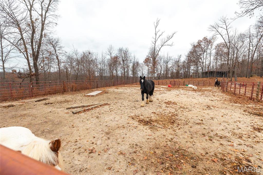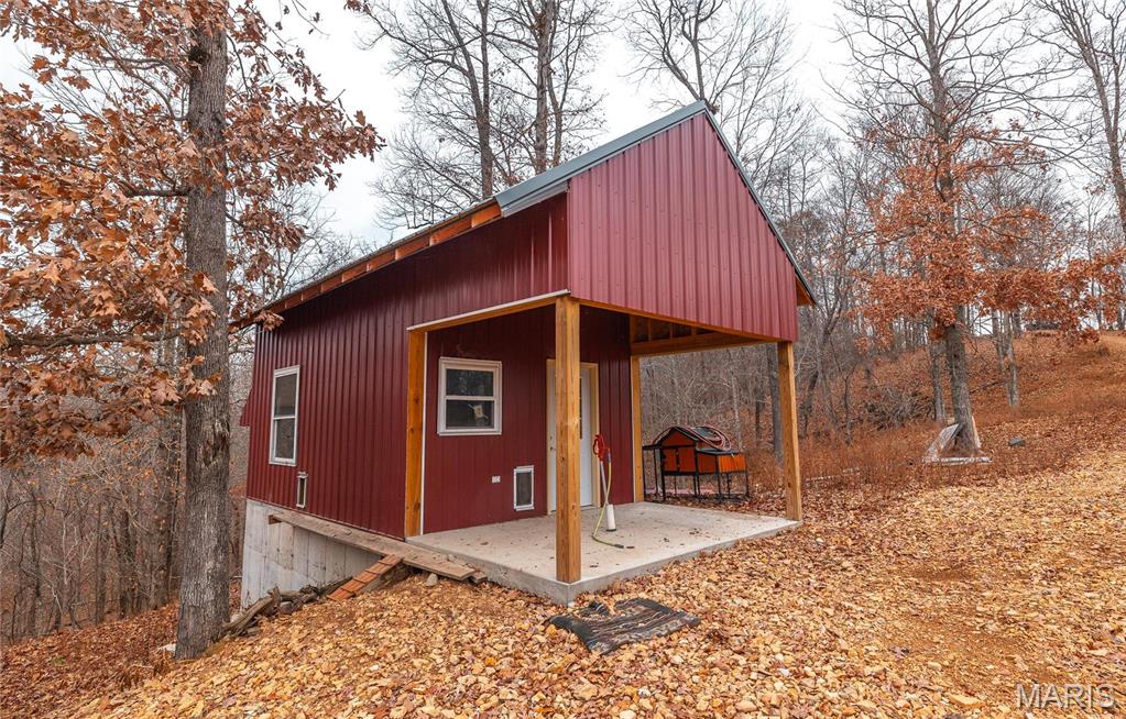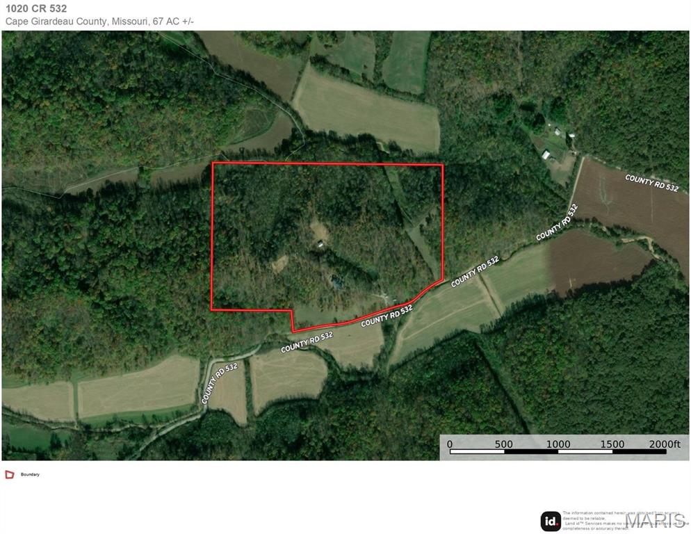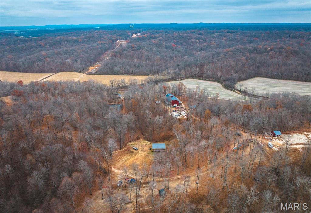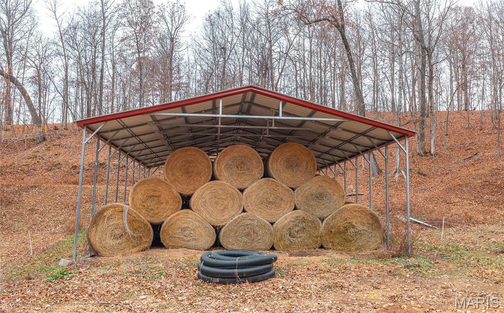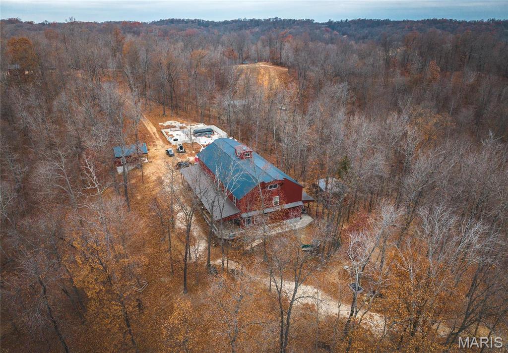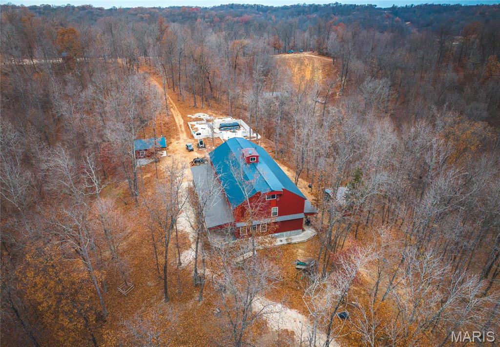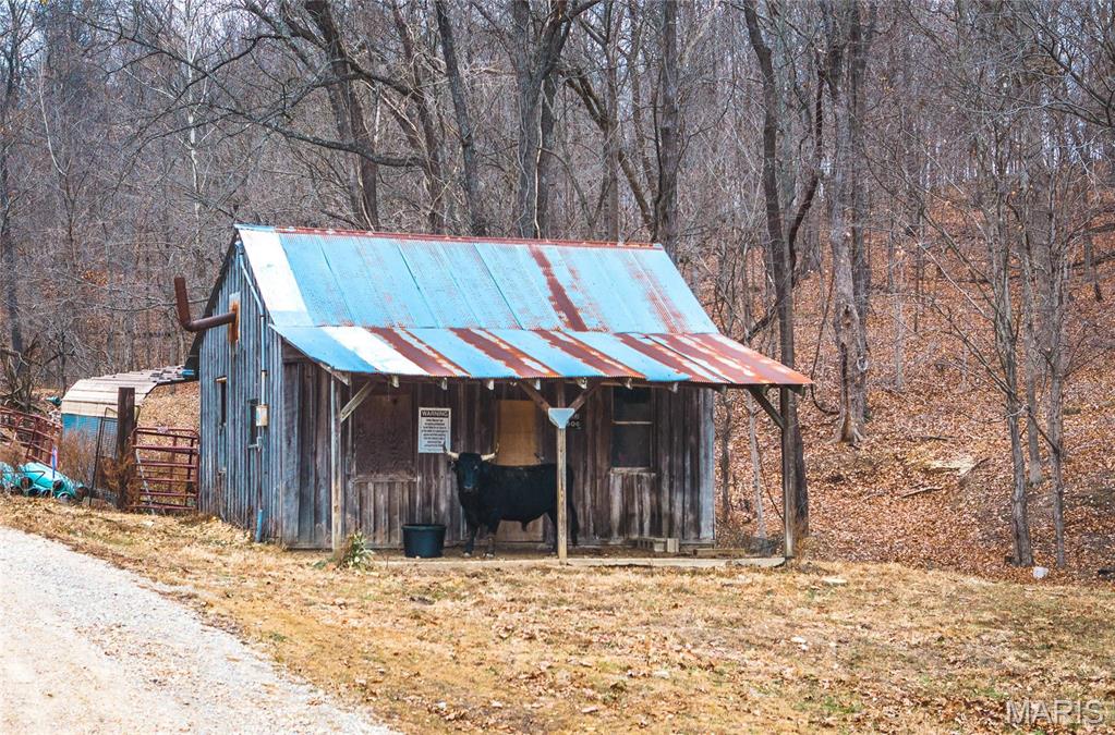 Nestled on 67 wooded acres this property is a recreational paradise & a hunter's dream. The grounds boast a diverse array of wildlife, including deer, turkeys & more. It backs up to Apple Creek Conservation Area, providing additional hunting opportunities. A wet weather creek graces the northwestern corner where several fossils and artifacts have been found. Located in the esteemed Jackson School district, the barndo house features over 7000sqft with stunning concrete flooring with radiant floor heat. Custom cabinetry & trim work adorn the interior while a storm shelter adds a layer of security. The 3rd level offers ample storage space. Beyond the house is a chicken coop, a woodshed with a stove, a tack shed for equine equipment, a run-in shelter, 2 hay barns & a well house as well as an extra foundation sets the stage for future expansion. With breathtaking views of the bottomlands below, this property seamlessly combines natural beauty with thoughtful design.