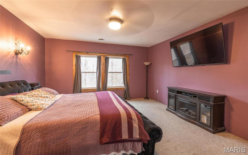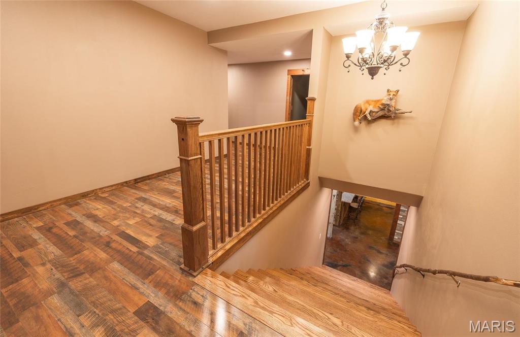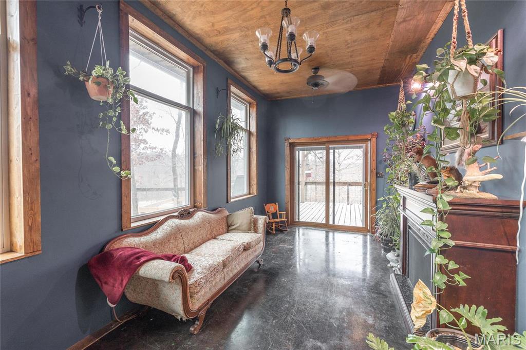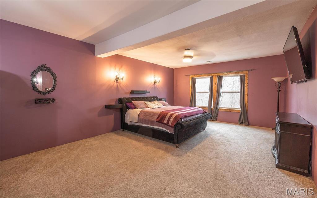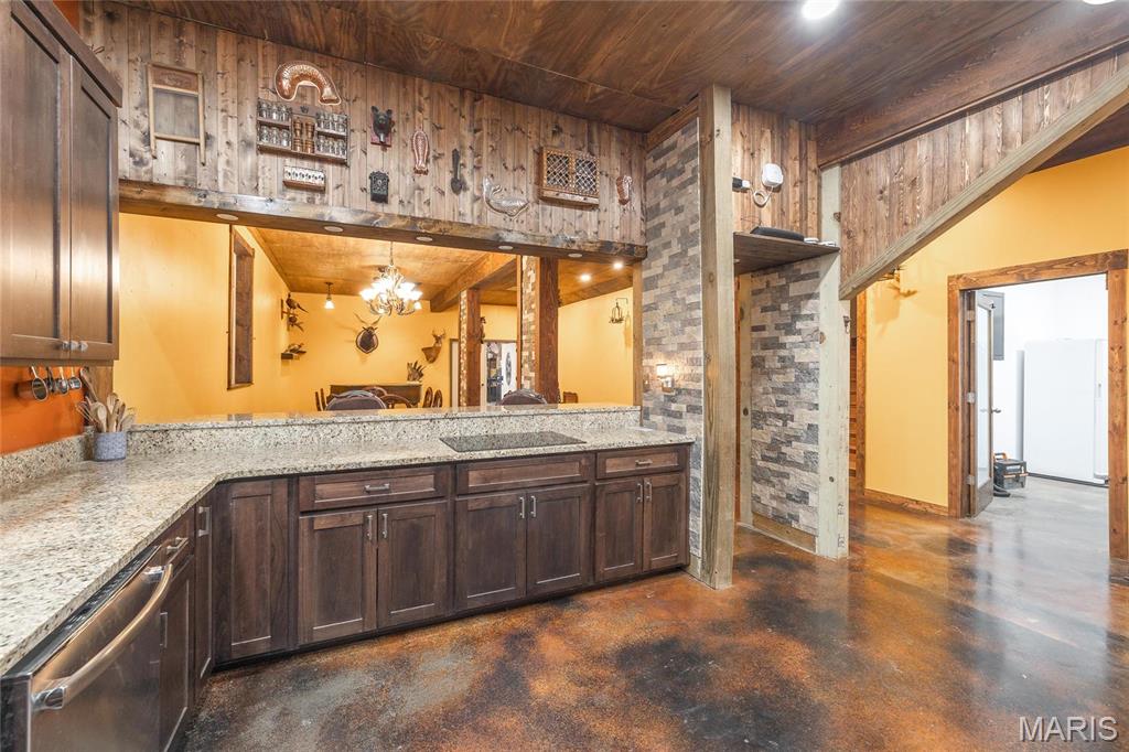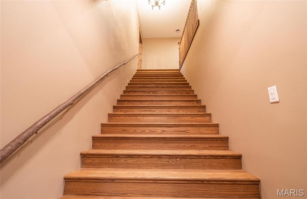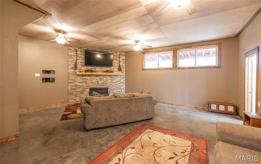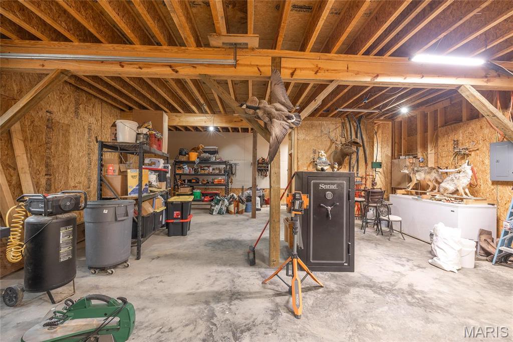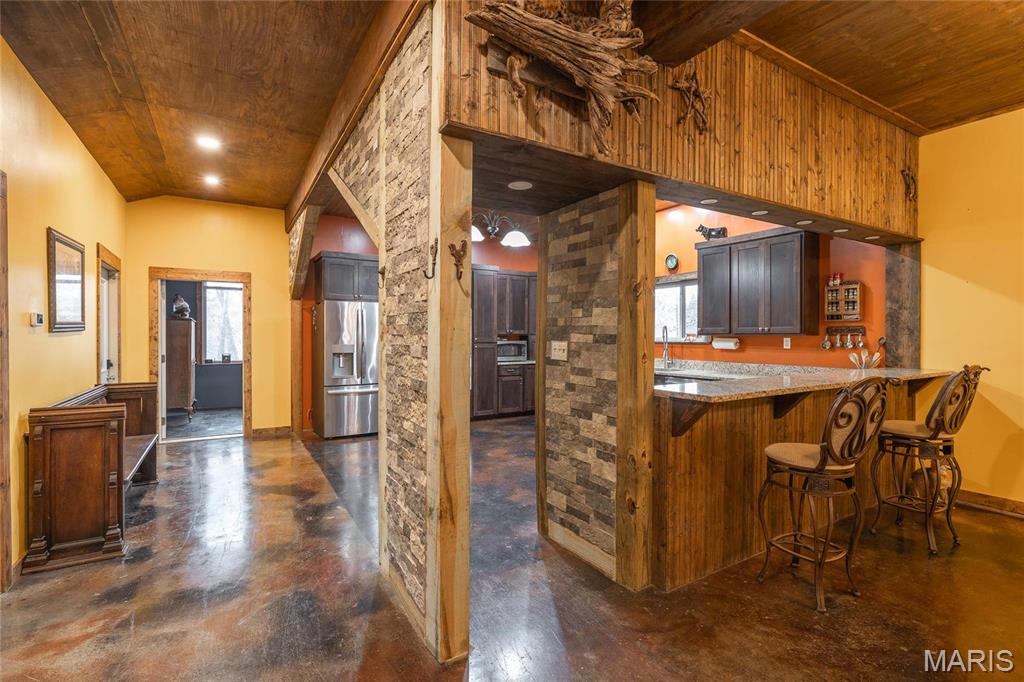 Nestled on 67 wooded acres this property is a recreational paradise & a hunter's dream. The grounds boast a diverse array of wildlife, including deer, turkeys & more. It backs up to Apple Creek Conservation Area, providing additional hunting opportunities. A wet weather creek graces the northwestern corner where several fossils and artifacts have been found. Located in the esteemed Jackson School district, the barndo house features over 7000sqft with stunning concrete flooring with radiant floor heat. Custom cabinetry & trim work adorn the interior while a storm shelter adds a layer of security. The 3rd level offers ample storage space. Beyond the house is a chicken coop, a woodshed with a stove, a tack shed for equine equipment, a run-in shelter, 2 hay barns & a well house as well as an extra foundation sets the stage for future expansion. With breathtaking views of the bottomlands below, this property seamlessly combines natural beauty with thoughtful design.