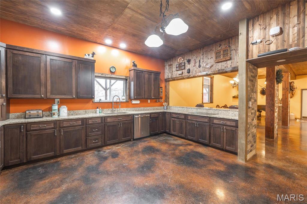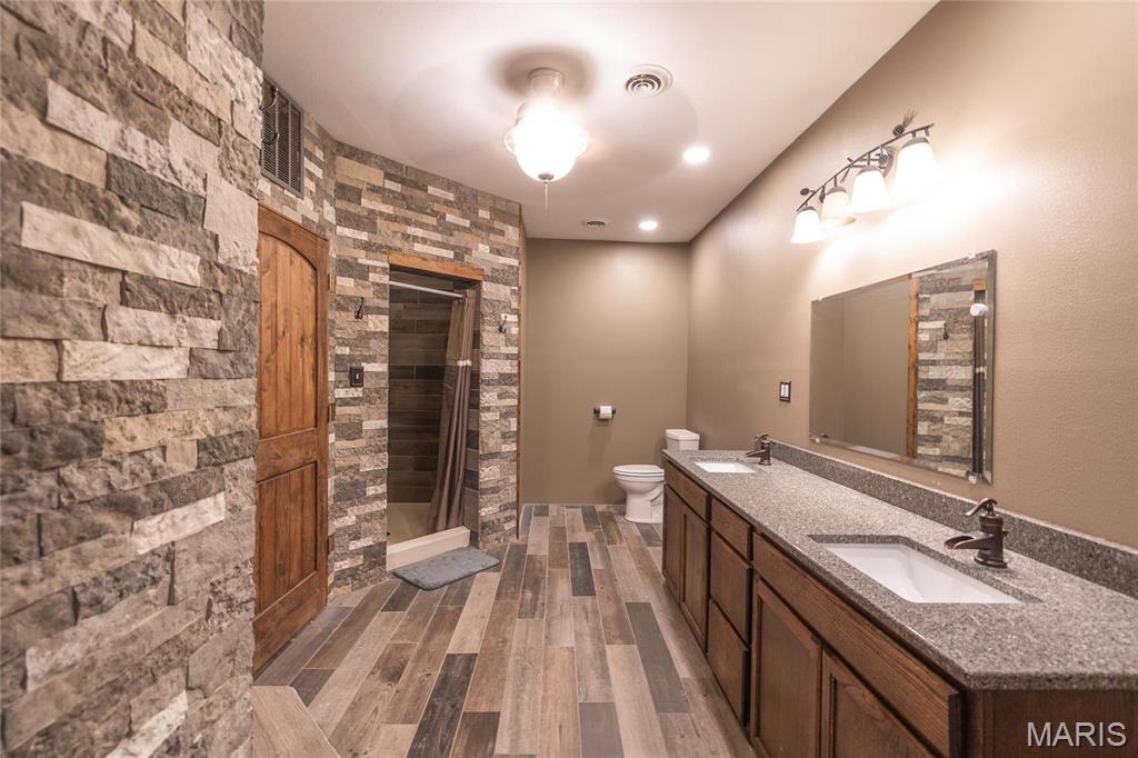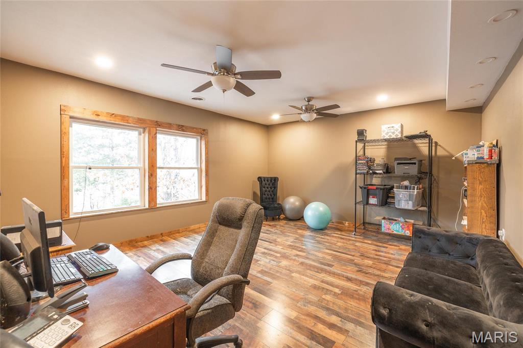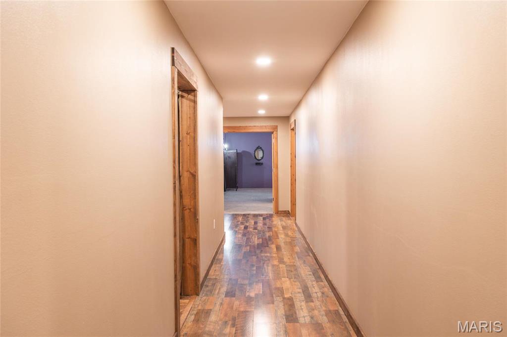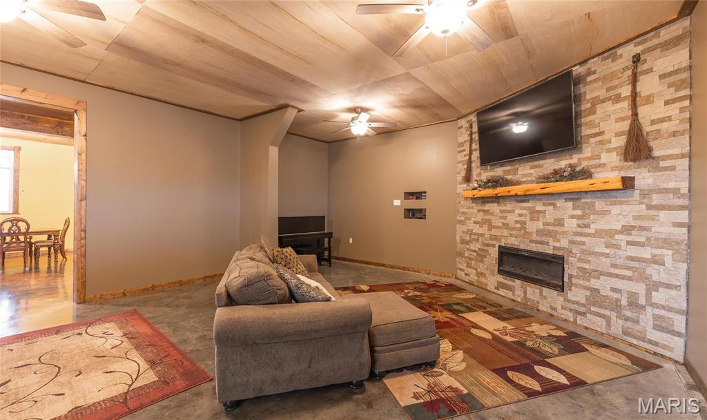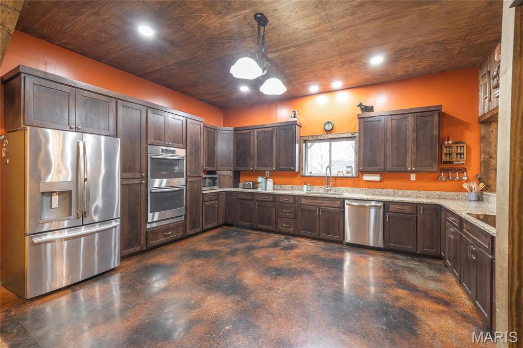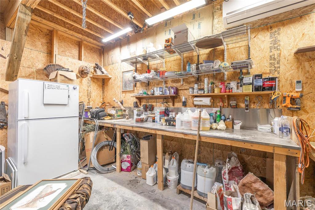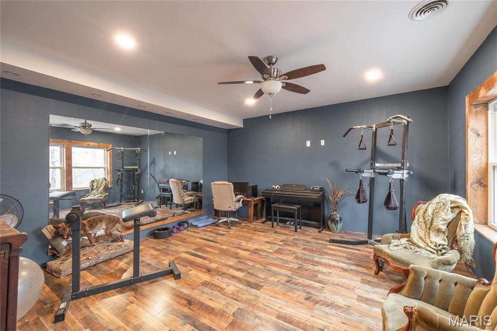 Nestled on 67 wooded acres this property is a recreational paradise & a hunter's dream. The grounds boast a diverse array of wildlife, including deer, turkeys & more. It backs up to Apple Creek Conservation Area, providing additional hunting opportunities. A wet weather creek graces the northwestern corner where several fossils and artifacts have been found. Located in the esteemed Jackson School district, the barndo house features over 7000sqft with stunning concrete flooring with radiant floor heat. Custom cabinetry & trim work adorn the interior while a storm shelter adds a layer of security. The 3rd level offers ample storage space. Beyond the house is a chicken coop, a woodshed with a stove, a tack shed for equine equipment, a run-in shelter, 2 hay barns & a well house as well as an extra foundation sets the stage for future expansion. With breathtaking views of the bottomlands below, this property seamlessly combines natural beauty with thoughtful design.