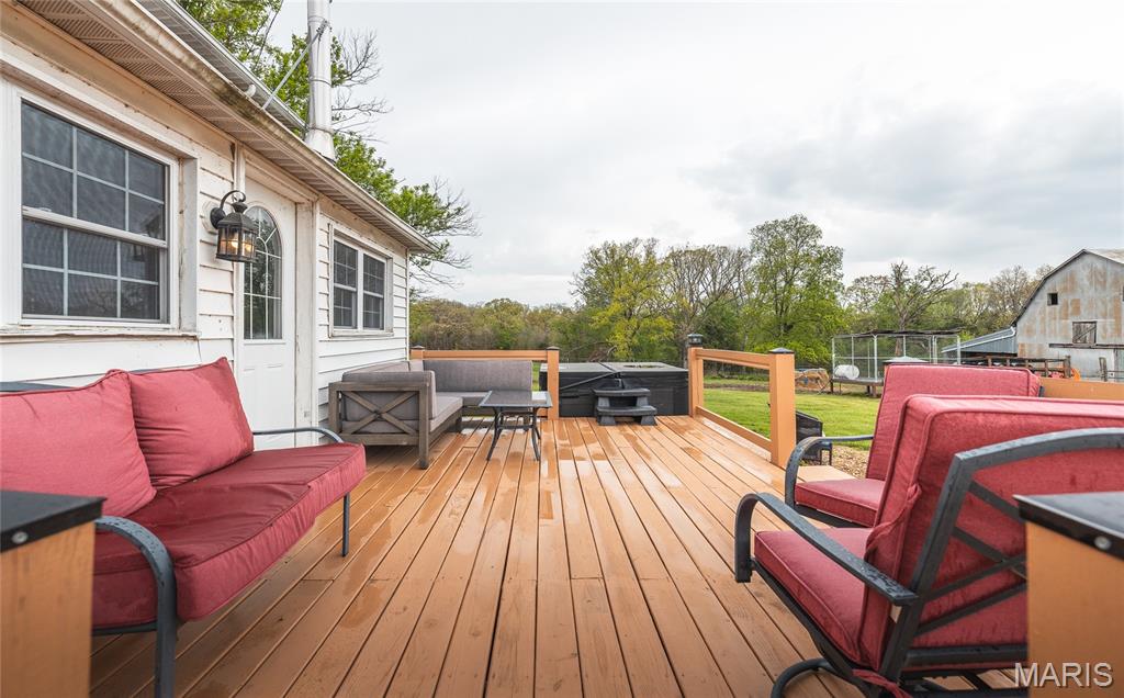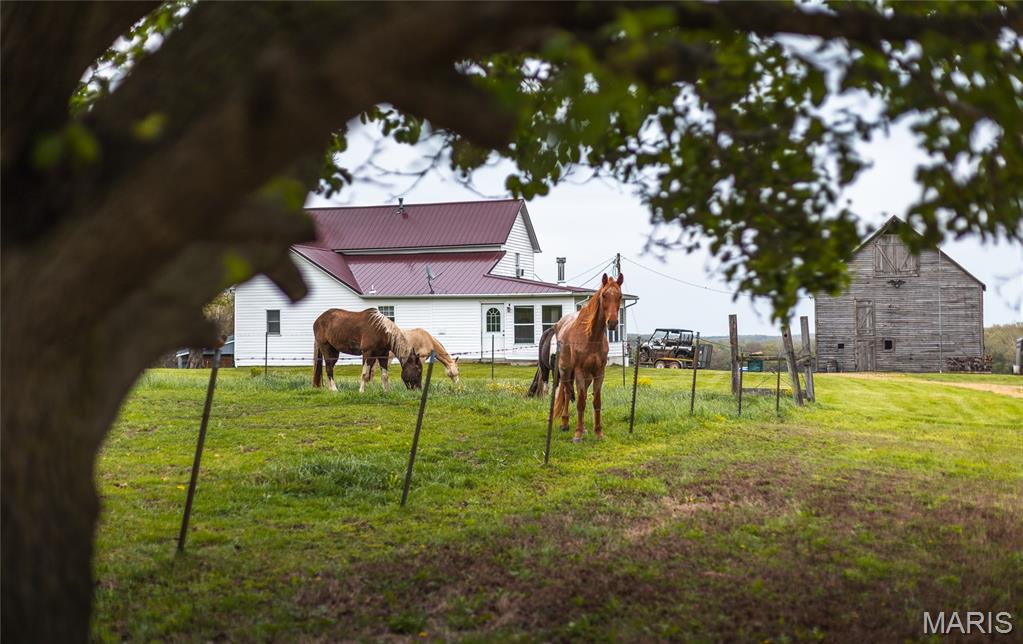 Set in the rolling countryside of Gasconade County, Quail Ridge Acres offers 160 +/- acres of well-balanced ground combining open pasture, mature timber, and multiple water features, all anchored by a classic white 2-story farmhouse. The 3 bedroom, 1 bath farmhouse offers approximately 1,600 +/- sqft and reflects a traditional design with thoughtful updates over time. The home features an updated kitchen, comfortable living spaces, and a sunroom overlooking the lake, creating a natural connection between the home and the land. Positioned to take advantage of the setting, the home overlooks a stocked 2-acre lake, with views extending across the surrounding acreage. Approximately 100 acres of the property is open and currently utilized for hay and recreation, with the remaining acreage in woods providing an excellent wildlife habitat with abundant turkey and deer. The farm has been thoughtfully improved by the current owners and is now set up for quail management, bird dog training, and horseback riding, with established trails running throughout the property. In addition to the main lake, the property includes two smaller ponds and a wet weather creek, enhancing both usability and wildlife appeal. Improvements include a well-maintained barn with horse stalls along with an additional outbuilding suited for equipment, livestock, or recreational use. Quail Ridge Acres is an opportunity for those seeking a private, well-rounded farm offering both a comfortable home and exceptional recreational ground.