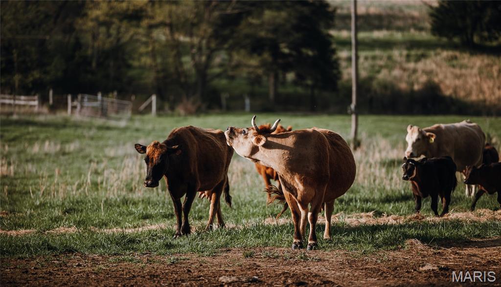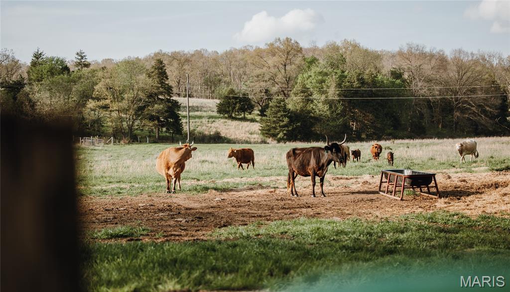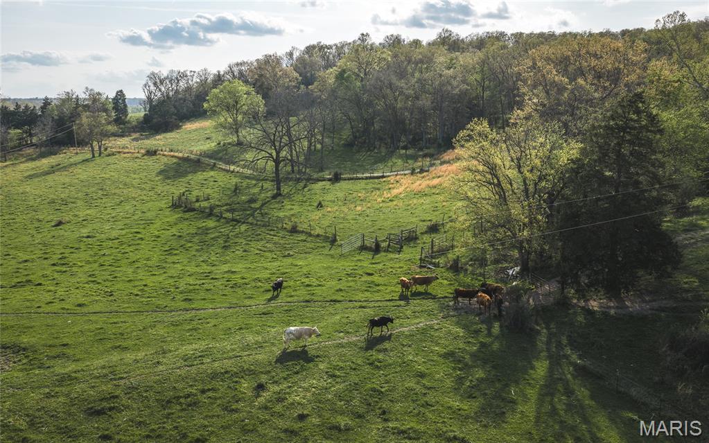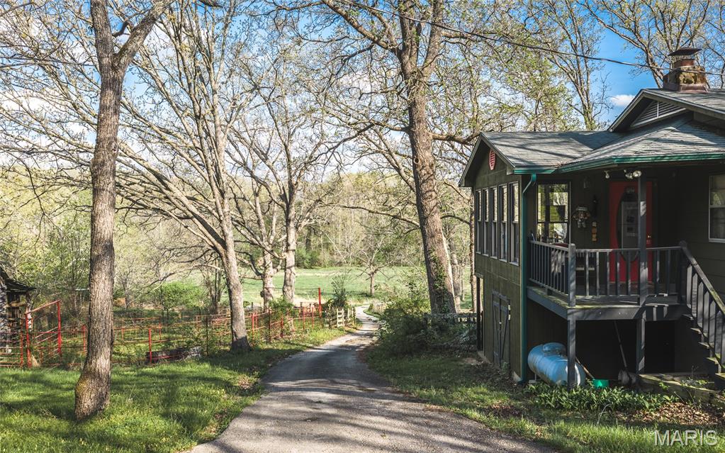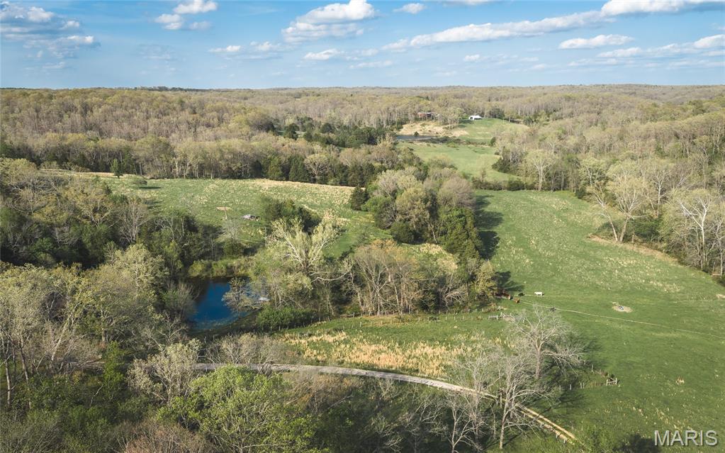 104± acres of prime Missouri countryside offering the perfect blend of pasture, water, and wildlife. Approximately 25 acres of open pasture are cross-fenced and ready for livestock, while the balance of the property provides a beautiful mix of woods, creating ideal habitat for whitetail deer and turkey. Water is abundant with a year-round creek, four ponds, and several natural springs scattered throughout the land. The setting is truly special—nestled on a wooded hillside, the home overlooks rolling pasture and the creek below, with a wall of windows in the living room that brings the outdoors in. The current layout includes a large master bedroom that was originally two rooms and could easily be converted back to create a 3-bedroom home. The lower level features a stunning stone gas fireplace, would be a very cozy den or family room. With some updating, this property could truly become a showplace. Additional improvements include a 2,320 sq ft hay barn and a 576 sq ft lean-to shed, making it well-suited for farming or recreational use. Located just minutes from the Meramec River close to Meramec Spring Trout Fishery, and only about 1 hour 20 minutes from St. Louis. PRICED TO SELL