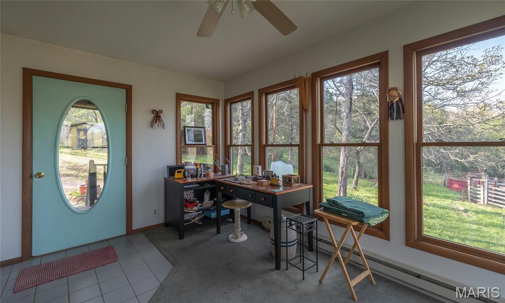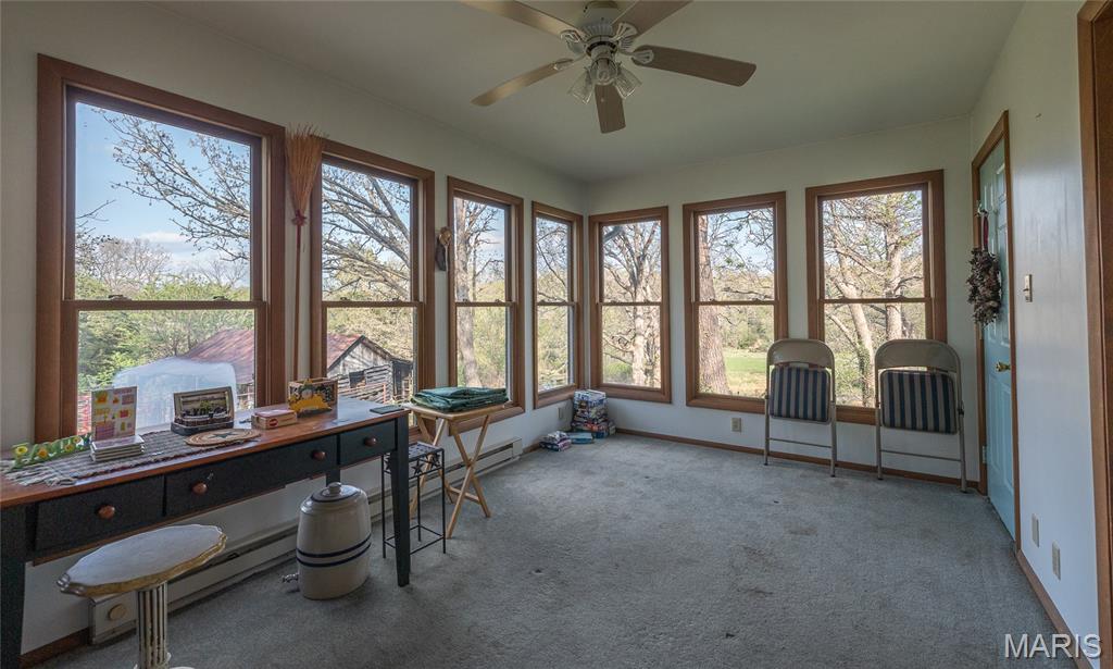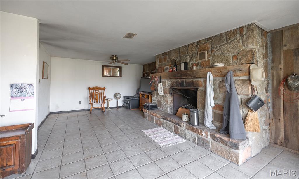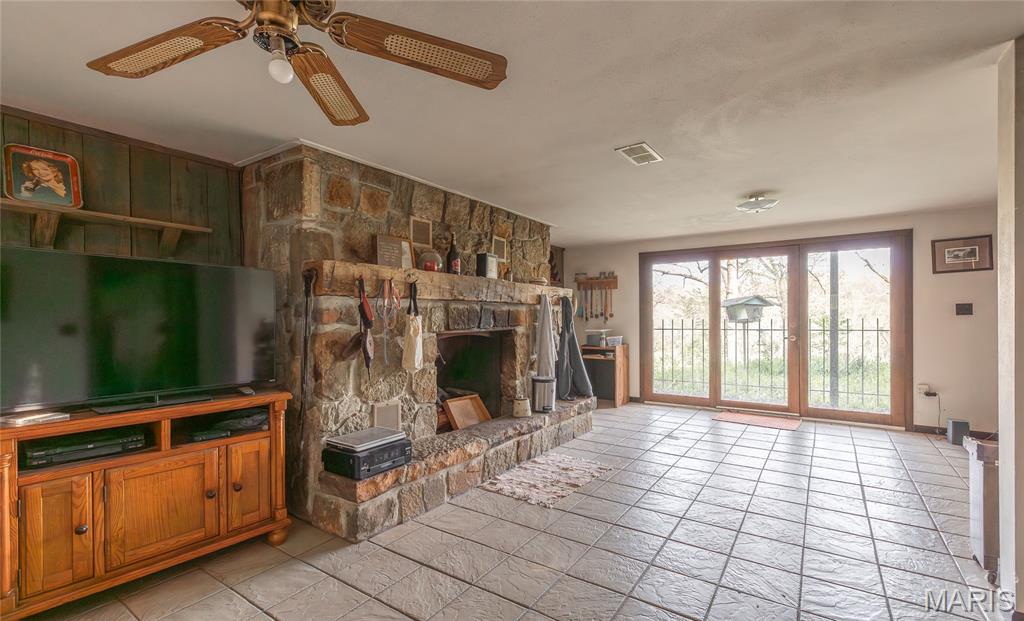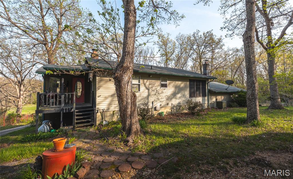 104± acres of prime Missouri countryside offering the perfect blend of pasture, water, and wildlife. Approximately 25 acres of open pasture are cross-fenced and ready for livestock, while the balance of the property provides a beautiful mix of woods, creating ideal habitat for whitetail deer and turkey. Water is abundant with a year-round creek, four ponds, and several natural springs scattered throughout the land. The setting is truly special—nestled on a wooded hillside, the home overlooks rolling pasture and the creek below, with a wall of windows in the living room that brings the outdoors in. The current layout includes a large master bedroom that was originally two rooms and could easily be converted back to create a 3-bedroom home. The lower level features a stunning stone gas fireplace, would be a very cozy den or family room. With some updating, this property could truly become a showplace. Additional improvements include a 2,320 sq ft hay barn and a 576 sq ft lean-to shed, making it well-suited for farming or recreational use. Located just minutes from the Meramec River close to Meramec Spring Trout Fishery, and only about 1 hour 20 minutes from St. Louis. PRICED TO SELL